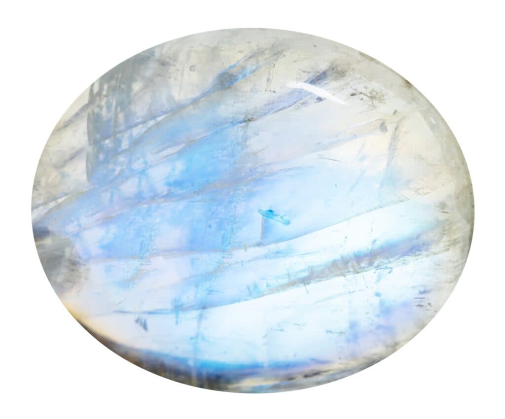 The best moonstones have a bright and clear blue adularescence. Some refer to this as a "blue sheen". Gems may also show a white or silver-colored adularescence.