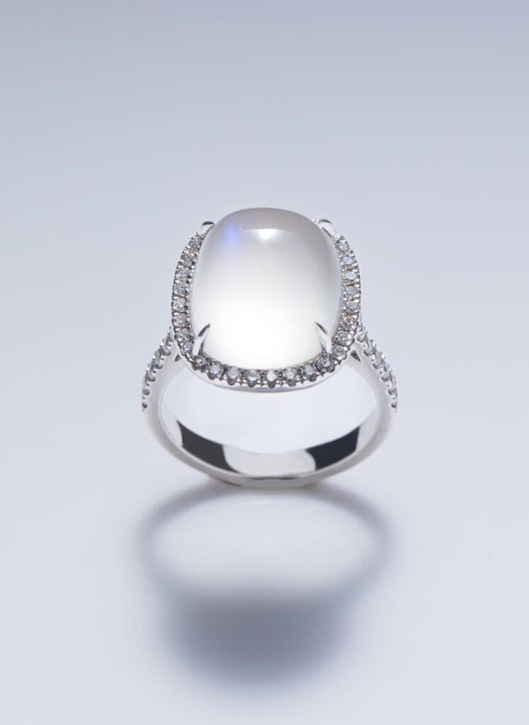 We know that the most important value characteristic for moonstones is their intrinsic adularescence. But we also know that the sheen is caused by the diffusion of light in between layers of orthoclase and albite. As such, the direction that you look at the gem is very important. If cutters orient the top of the gem at an incorrect angle, the sheen will not be centered. You may not be able to see it at all.