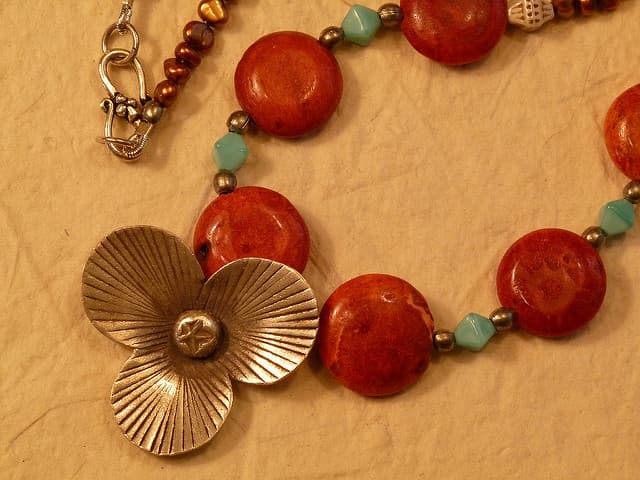 Coral is the external skeleton of a tiny, plant-like marine animal called the coral polyp. The structures that result from generations of these creatures growing as colonies on top of each other can be quite massive. Since time immemorial, coral has been used for carvings, cabochons, and other jewelry pieces.