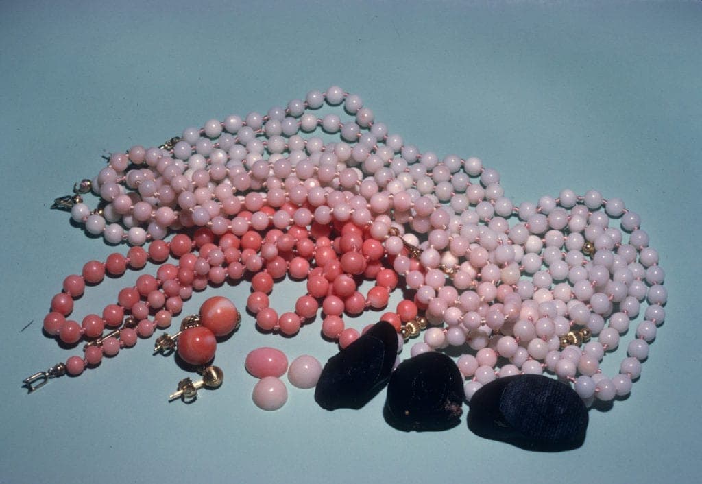 The gem use of coral began before recorded history. The Ancient Greeks, Romans, and Native Americans used red, pink, and white corals extensively. Deep red, bright pink, and clear white corals were highly prized. Inland cultures far from the undersea sources of coral would trade for these objects.