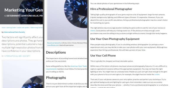 Accurate descriptions and quality photographs are essential for marketing your gems online. Learn about options and best practices for improving your sales.