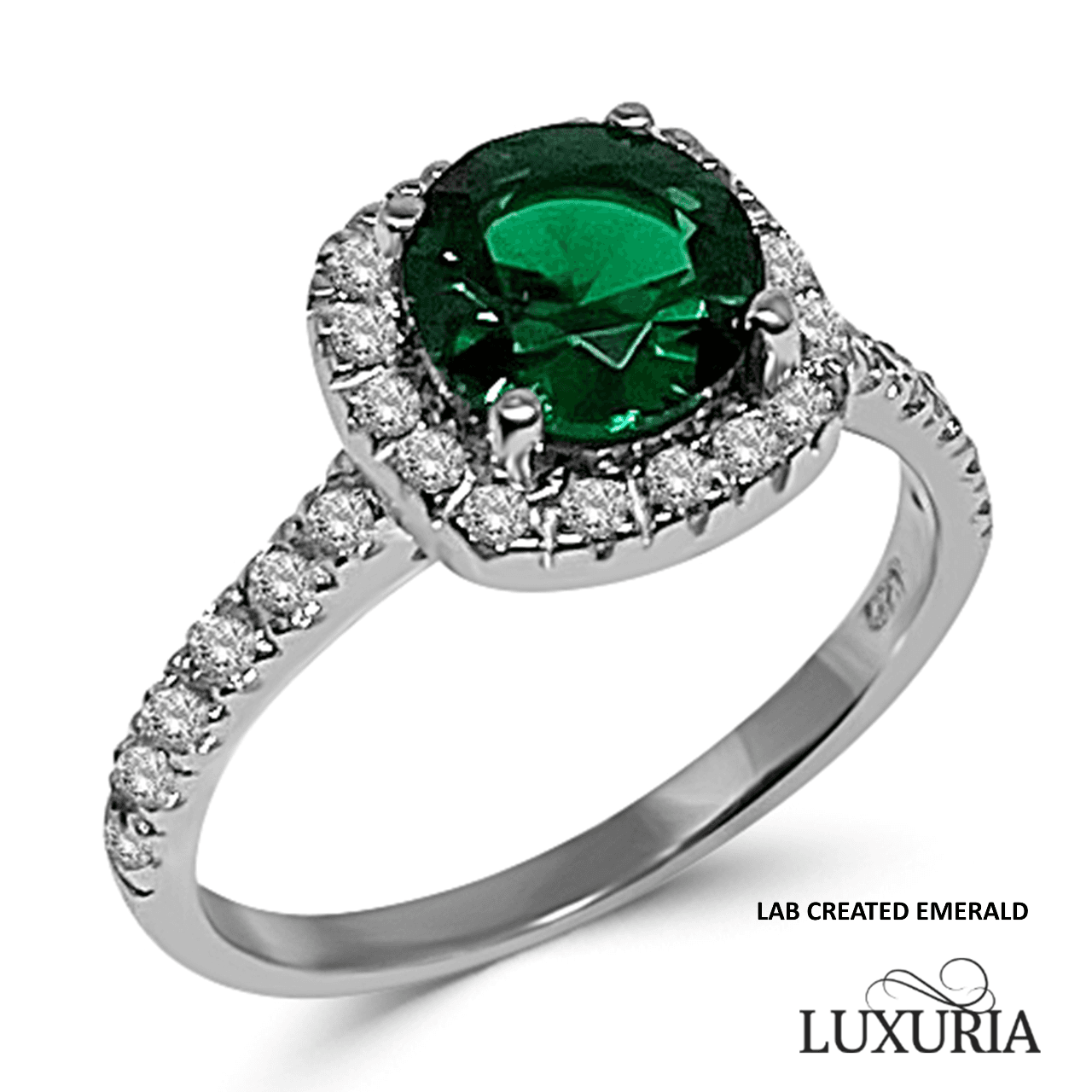 The Luxuria® brand designs and produces diamond simulant rings, coloured gemstone engagement rings and pink diamond simulant engagement rings. In addition to producing jewelry with natural precious and semi-precious gemstones we also design and produce rings using lab created stone with this lab created emerald engagement ring being just one example.