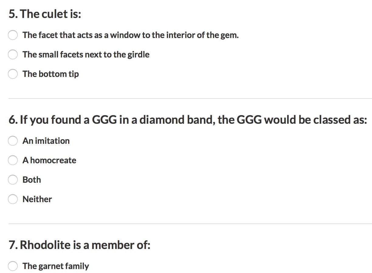Sure! We have some sample gemology questions from the actual IGS Professional Gemologist certification exam. This should give you a sense of the types of questions that we ask in our course exams and quizzes.