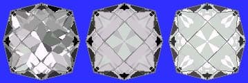 Gram Book 1 - This design is fairly simple to cut and makes a nice stone in about any material. Try cutting it in a lighter colored material, it makes nice earrings or ring, 1-6cts. Works in man-made Sapphire and Spinel. Cut in refractive indexes 1.73 to 2.14 (88.6%) with no changes.