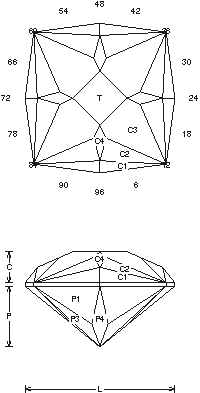 Gram Book 1 - This design cuts easy and fast in any material. Be careful when you cut the C4 facets to make sure that they are even so that the table meets, 1-6cts. Cut in refractive index 1.78 to 1.93 with no changes.