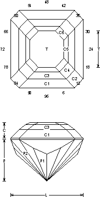 Addition # 7 - This is my take on an old fashioned square emerald cut. This works very well in almost any material but particularly well in light colored materials. Cut this in refractive indexes 1.54 to 2.14 with no changes…