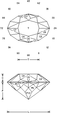 Addition # 2 - This is a little hard to cut. The crown can be hard to get to meet, roughing in the table helps. This makes a nice cut in any light to medium material, 1-16cts. Cut in refractive indexes 1.76 to 1.98 with no changes.