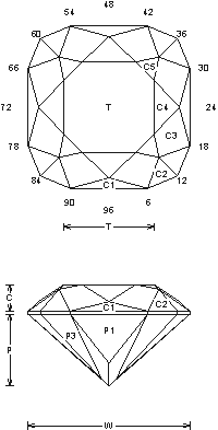 Detailed information and guide on Faceting Designs. A Faceting Design Diagram by Jeff R. Graham that presents various cuts, this one is called "Classic I".