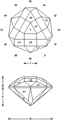 Detailed information and guide on Faceting Designs. A Faceting Design Diagram by Jeff R. Graham that presents various cuts, this one is called "Delta".
