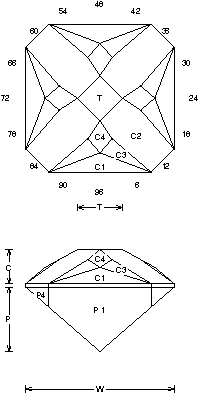 Addition # 9 - Note: The corners do not cut to center point. This design is made so the corners can vary depending on rough. Just eyeball the P3(G) in until it looks right. This cuts fast and works well in any light to medium saturated material. Cut this in refractive index 1.54 to 2.14 with no changes.