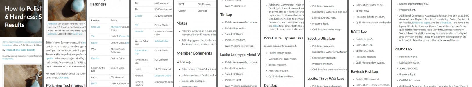 Polishing feldspar, fluorite, apatite, or other gems in the 4-6 hardness range? Our IGS member survey results can recommend some techniques and supplies.