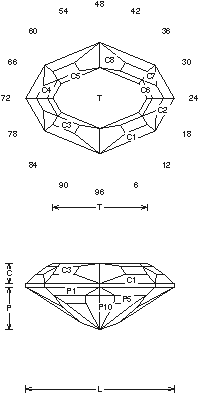Detailed information and guide on Faceting Designs. A Faceting Design Diagram by Jeff R. Graham that presents various cuts, this one is called "Flipper".