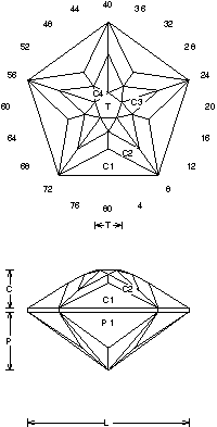 Addition # 9 - This is designed for lightly saturated materials like Tourmaline and Aquamarine. Try this in a light Tourmaline nodule, it is a real sparkler. Cut in refractive indexes 1.54 to 2.14 with no changes. The table can be skipped on a small stone.