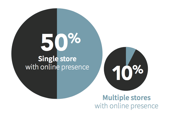 Among 450 responses, more than 200 retail jewelers from throughout the United States completed the survey. Of those respondents, 50% had a single store with an online presence (website and social media). 10% had multiple stores with online presence.