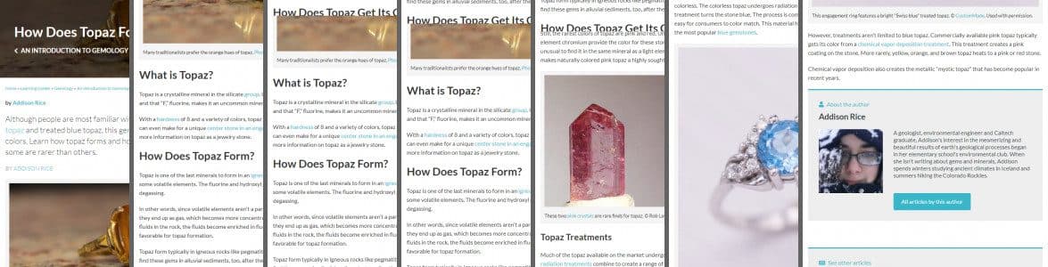 Topaz requires specific and unusual conditions to form. Learn how topaz develops and how it gets its colors, from yellow and blue to rare and valuable pink.