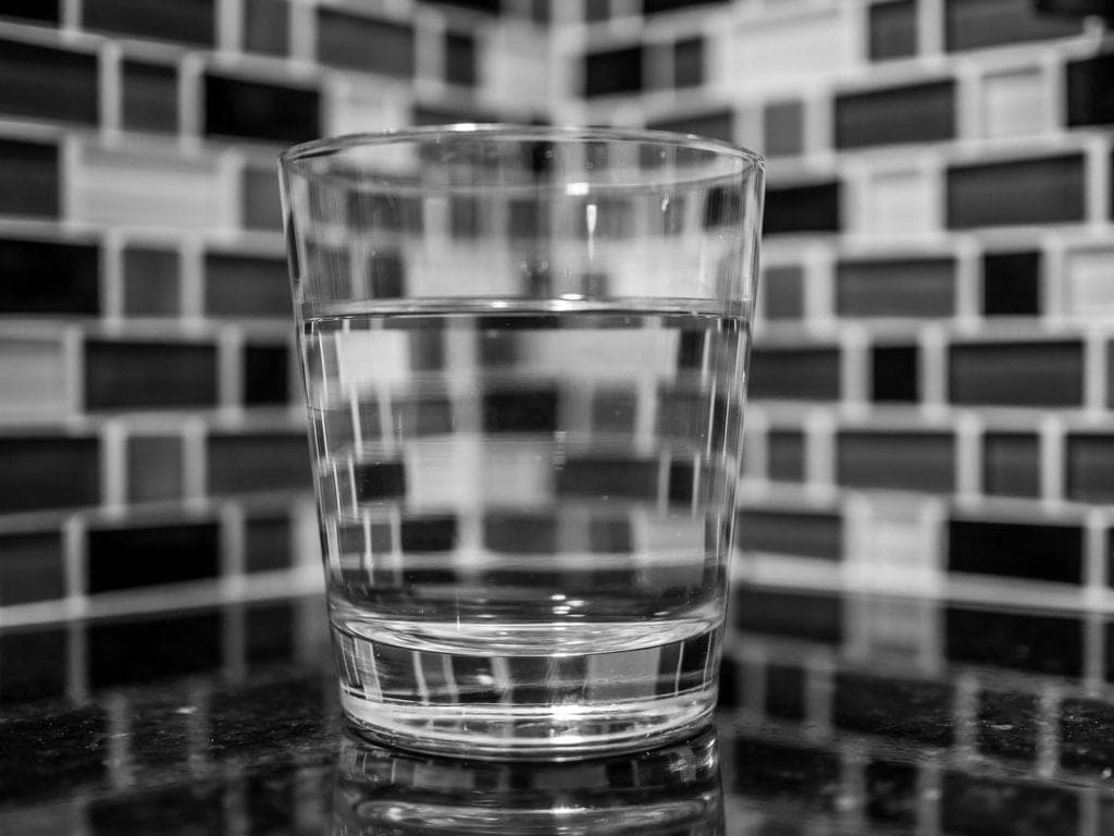 A glass of water and a loose gem.