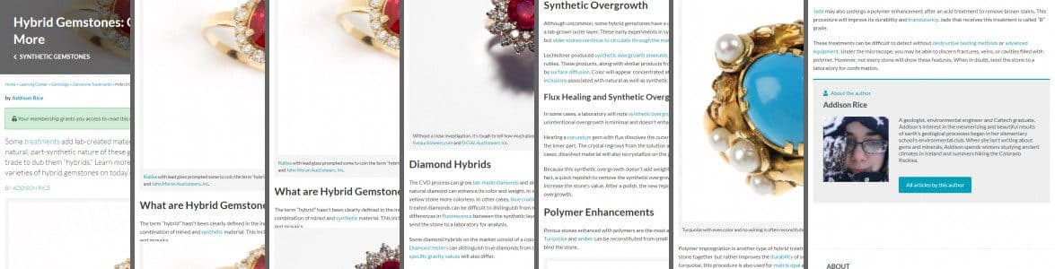 The term “hybrid” hasn’t been clearly defined in the industry. Some use the term to refer to any combination of mined and synthetic material. This includes assembled gems such as doublets, triplets, and mosaics.