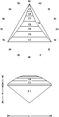 Successful tips, details, and guide on Faceting Designs. A Faceting Design Diagram by Jeff R. Graham that presents various cuts, this one is called "Kiss".