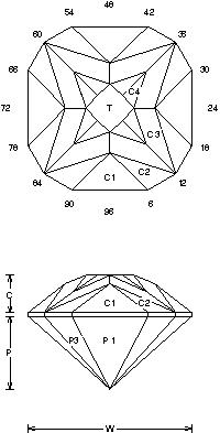 Successful tips and guide on Faceting Designs. A Faceting Design Diagram by Jeff R. Graham that presents various cuts, this one is called "Lavender Storm".