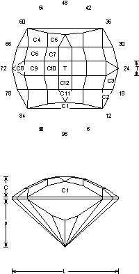 Addition # 8 - This makes a nice cross if you leave the C8 thru C12 and the table frosted. It will show up well in light colored material. Cut in refractive indexes 1.56 to 2.14 with no changes. Notice the C12 tier is very shallow, I just rub the facets in by hand.