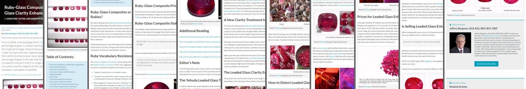 Ruby-glass composites and leaded glass ruby clarity enhancements are difficult for gemologists to detect. Learn how to identify these gems and procedures.