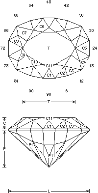 Successful tips, details, and guide on Faceting Designs. A Faceting Design Diagram by Jeff R. Graham that presents various cuts, this one is called "Near P"