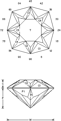 Addition # 2 - The crown on this design can be hard to cut. The C5,C6 tiers are close and can be tough to get right. The P5 tier is not center point, cut it until the P4 are just tapered, any material, 1-18cts. Cut in refractive indexes 1.62 to 1.76 with no changes.