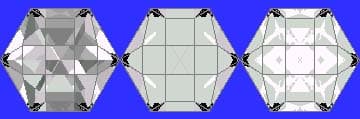 Successful tips, details and guide on Faceting Designs. Faceting Design Diagram by Jeff R. Graham that presents various cuts, this one is called "Plus Six".