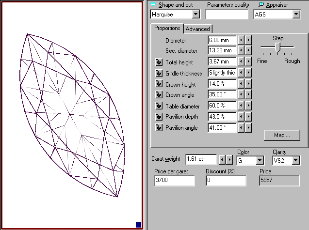 To use it, you first input the shape. As you add the dimensions and it calculates the remainder of them for you. When ready, it will print out an appraisal in AGA, AGS, GIA, HRD or Russian format. For the appraiser, this will make the job easier and save considerable work. However, that is just the beginning of what this software will do.