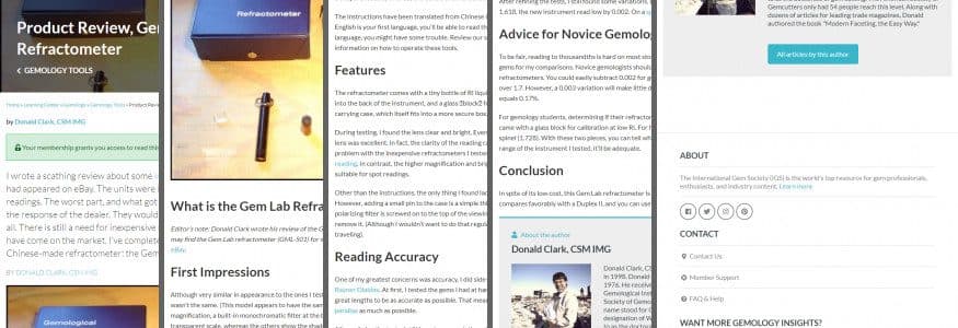 Editor’s note: Donald Clark wrote his review of the Gem Lab refractometer in 2006. Currently, you may find the Gem Lab refractometer (GML-501) for sale at resale shops and online marketplaces like eBay.