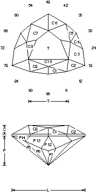 Addition # 7 - This is a little tough to cut the first time and not for a beginner. Once you do it, this design is easy. Rough P16 in to the correct L/W=1.216 before cutting the P12. It might take some tweaking on the P12-P14, this is made to float. Cut in refractive indexes 1.62 to 1.93 with no changes.