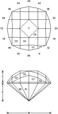 Addition # 6 - I designed this for some very pale Afghan Tourmaline nodules that I came across. This design will help deepen light colored material and will have a lot of sparkle. Cut this in refractive indexes 1.62 to 1.93 (89.6%) with no changes.