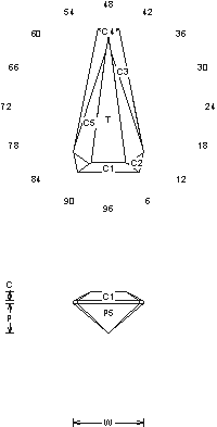 Addition # 4 - This is another design for set cutting, it is fast and simple to cut. It can be varied, in size to match the flat side(s)of the stone it's sitting next to(hex for example). The entire stone flashes from end to end with a broad ray like pattern. Cut this in R.I. 1.73 to 1.93 without changes.