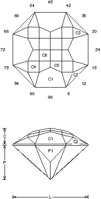 Addition # 6 - A table can be cut in to meet C5 on a larger stone or a light colored stone. It is a good idea so that you do not have the hole at the apex. This design works very well for saturated material and is really what I designed it for. It will cut well in Peridot, Garnet, Sapphire, Spinel, and man-made materials.