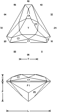 Addition # 7 - Cut in refractive indexes 1.76 to 2.20 with no changes. This is designed for light material with a high refractive index like Zircon. There are not a lot of facets on this design, but the sparkle is quite good. This design is good for accent stones that are on the small side, although it also works well in a large stone.