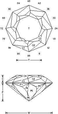 Gram Book 1 - Be very careful cutting C4, once you cut the first facet on the tier, you will not have any more meets, so make sure that all of the facets are the same size so they meet the table. Light to medium material, 1- 6cts. Works in man made Sapphire and Spinel. Cut in refractive indexes 1.73 to 2.14 with no changes. In 2.14 there is a lot of dispersion…