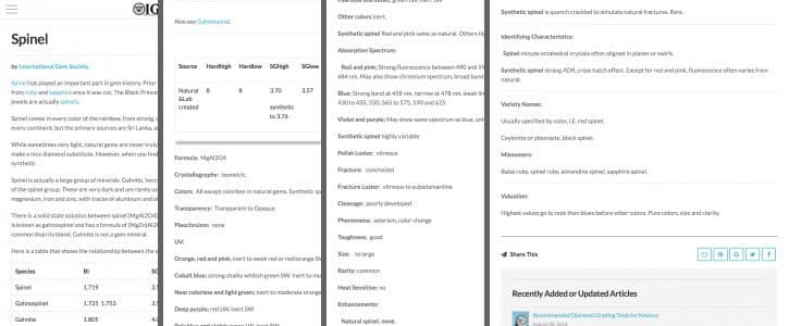 There is a solid state solution between spinel (MgAl2O4) and gahnite, (ZnAl2O4). The intermediate species is known as gahnospinel and has a formula of (MgZn)Al2O4. Unlike most series, pure spinel is much more common than its blend. Gahnite is not a gem mineral….