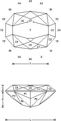 Gram Book 1 - This design cuts fast and mid-easy for an oval. The P7-P9 can be cut in another order if you want. It has nice flash and is good for darker material, 1-8cts. Works in man-made Sapphire and Spinel.