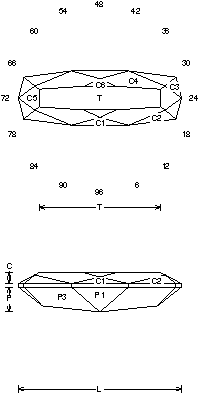 Successful tips, details and guide on Faceting Designs. Faceting Design Diagram by Jeff R. Graham that presents various cuts, this one is called "Suz's Bar"