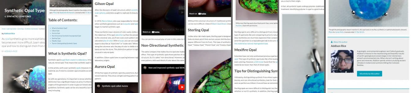 Distinguishing synthetic opal from a mined gem is a vital skill for opal dealers. Learn about five different types of lab-made opal and what they look like.