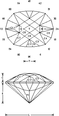 Addition # 8 - This can be a little tough to cut, but not too hard. It works in refractive indexes 1.54 to 1.93 with no changes. This works well in medium to dark material, I like it in Garnets. A L/W=1.325 preform is a good idea.