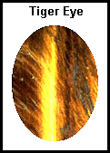 Crocidolite, (blue asbestos,) alters to quartz, but while retaining its fibrous structure. This material is frequently stained by iron, giving it a golden brown color. We know this material as tigers eye. Unstained pieces, retaining their original blue color, are called Hawks Eye. There are also pieces with both colors.