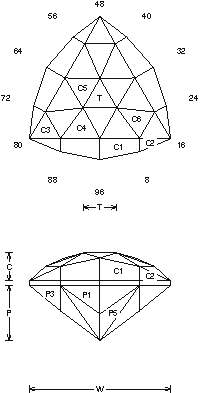 Successful tips, details and guide on Faceting Designs. A Faceting Design Diagram by Jeff R. Graham that presents various cuts, this one is called "Trig".