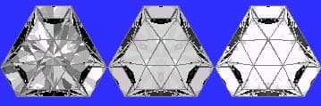 Addition # 6 - Can be cut in refractive indexes 1.54 to 1.93 (89.1%)with no changes. Tourmaline is 84.7%, Zircon is 89.1%… Basically, the dark bars out near the corners just go away as the R.I. goes up. I left this in Quartz because it cuts a nice stone.