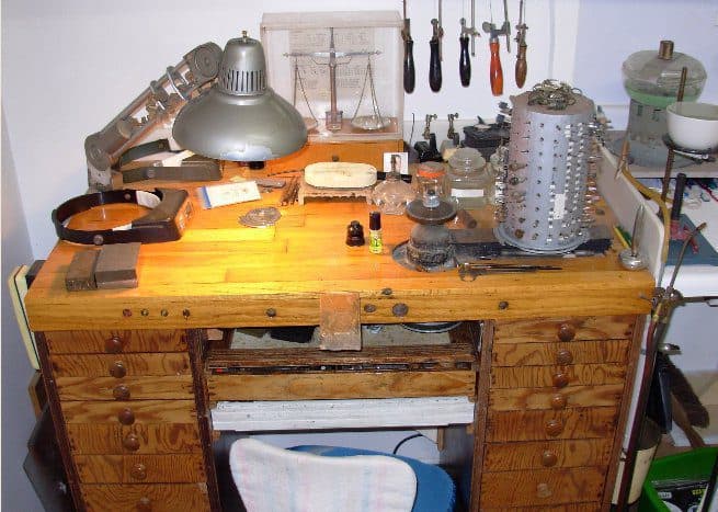 Bench jewelers mend the finest of chains, carve and cast original pieces, and do it with great ease. However, their life isn't all fun and games. I've heard horror stories about jewelry bought on TV. While rings test as solid gold, the shanks are sometimes hollow and melt during otherwise routine prong replacements. I once saw an antique garnet ring brought in for a stone replacement. It tested as 14k, but one piece was plated. During polishing, the plating was removed. The jeweler had to remake the entire ring.