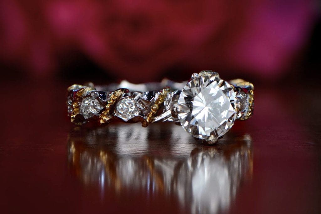Since the non-military use of platinum was banned during World War II, yellow and rose gold became the metals of choice for engagement rings in the United States during this period. Many rings from this era were two-toned, with both yellow gold and white gold in the design.
