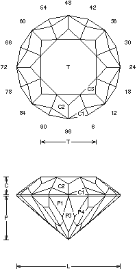 Addition # 2 - Note on this design in the Pavilion you will cut off 2 facets, because of the sym change. On the P4 some reach girdle, some are short, like steps but are center point. Cut P5 until center point & looks right, 1- 12cts. Cut in refractive indexes 1.62 to 1.93 (92.5%) with no changes.