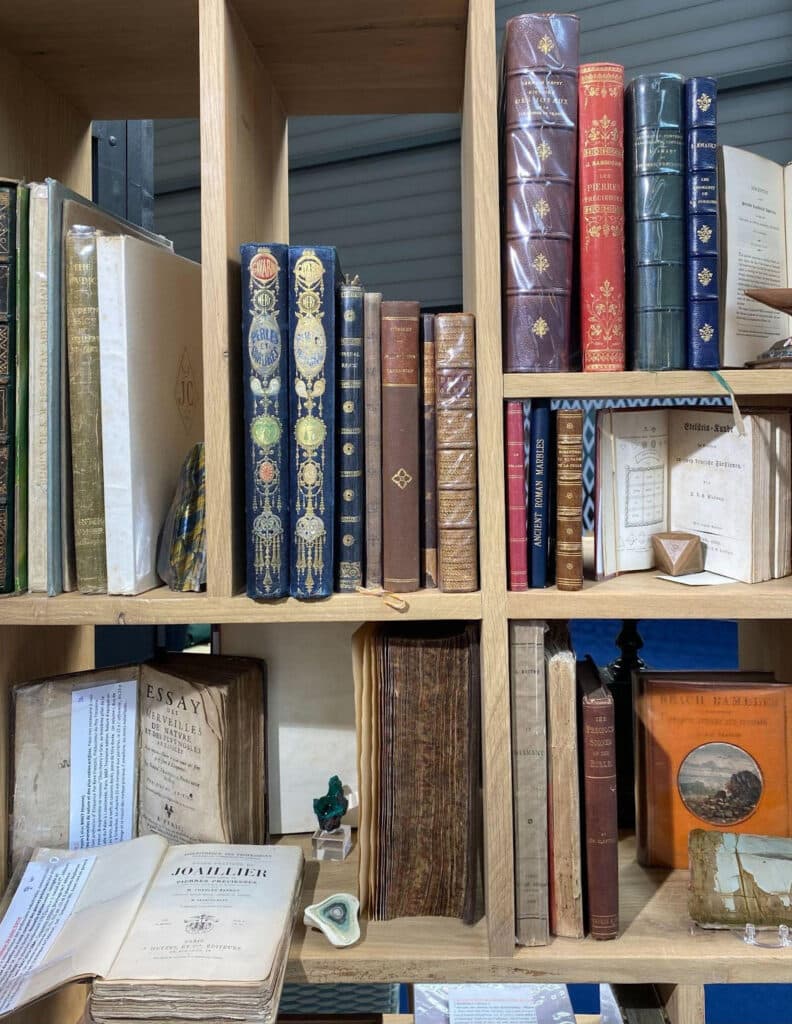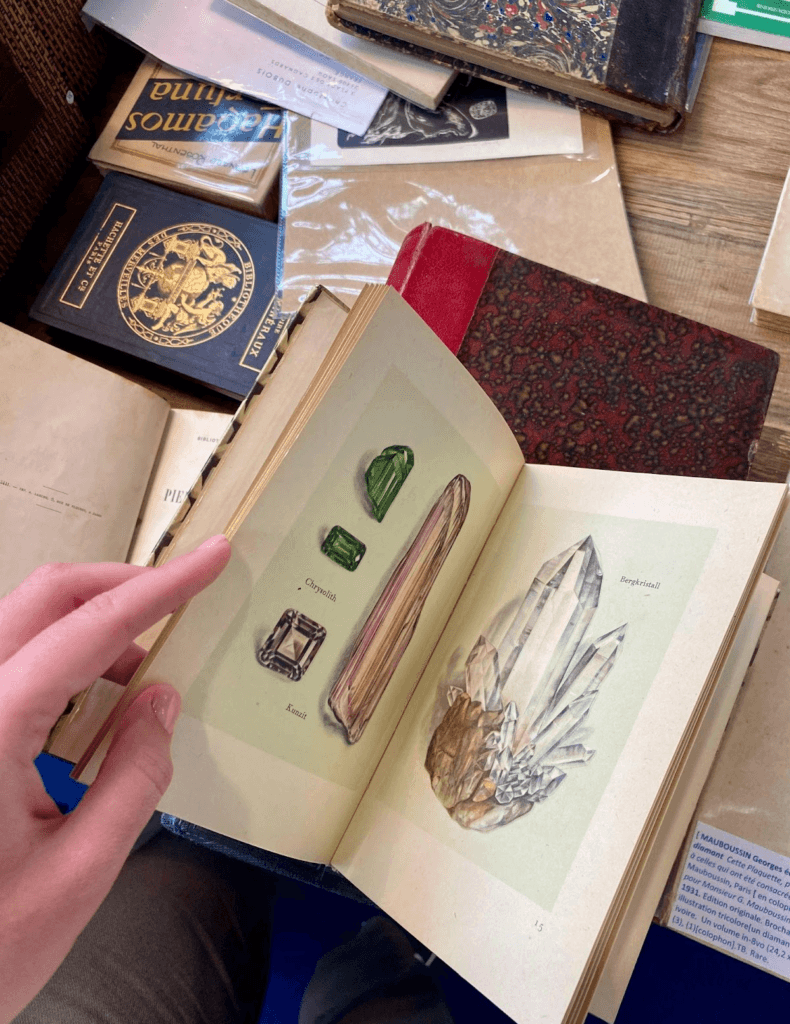 The most reputable gemological labs (GRS, Gübelin, SSEF) offer their service on on-site testing and education opportunities. There are vintage and modern book corners for those who want to take some books as gifts for friends or to enrich their home library.