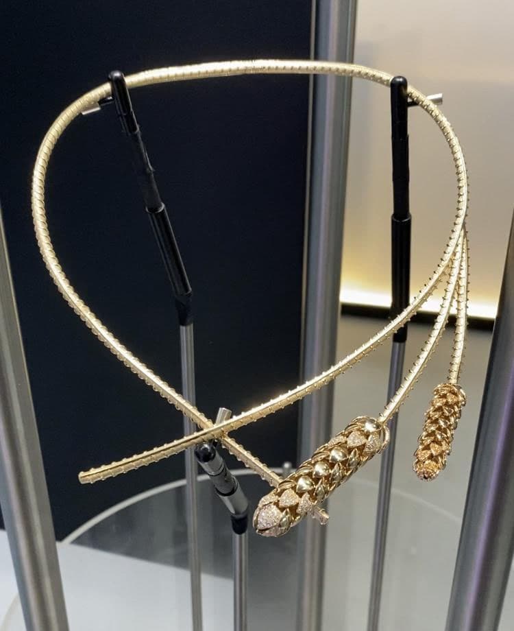 The "Kolosinnia" necklace created by Yuval Studios combines symbols of the metallurgy of Donbas and golden wheat ears of the South. It evokes an allusion to Ukraine's beauty, tenderness, and at the same time, indomitable spirit.
