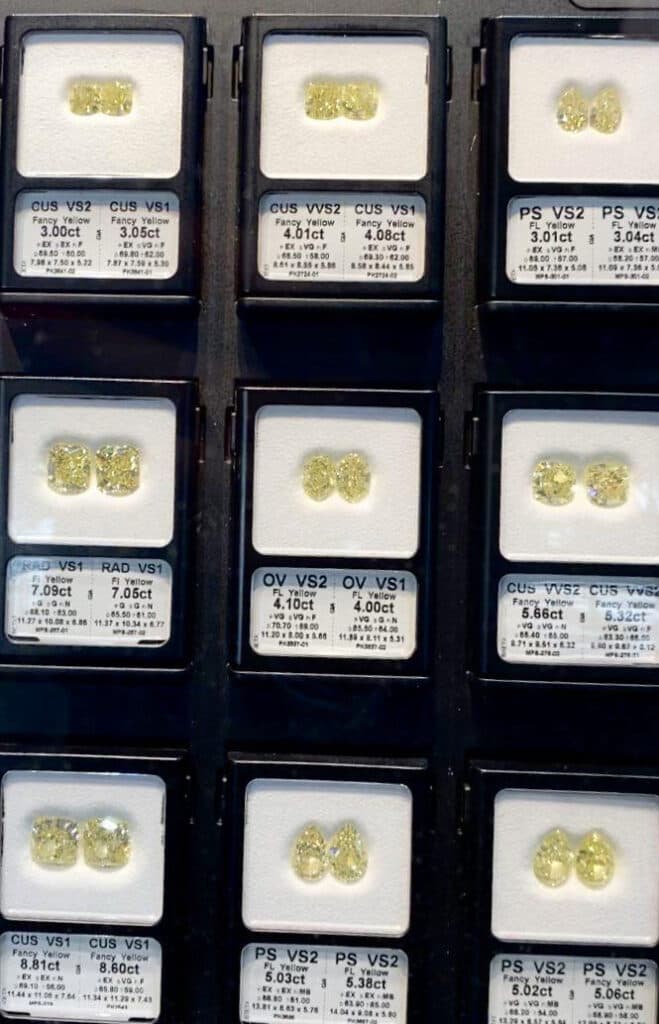 Undoubtedly, there are more yellow-colored stones. Some of them feature 40-50 carats of jumbo-size species. The other exciting trend is the prevalence of radiant cuts, cushions, and oval diamonds.